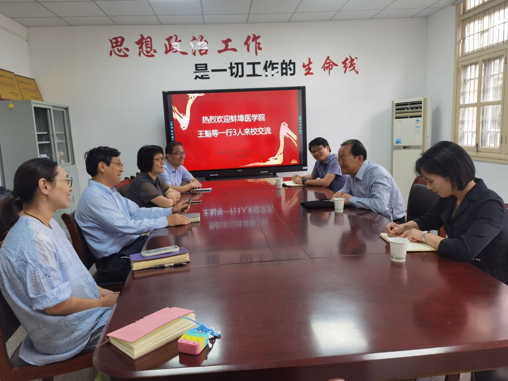 本网讯 9月21日下午,蚌埠医学院党委学工部(处)处长王魁、安庆医药高等专科学校党委委员陈琪一行来我校调研“一站式”学生社区工作。校党委副书记裴树东在勤政楼224会见了来校调研人员。