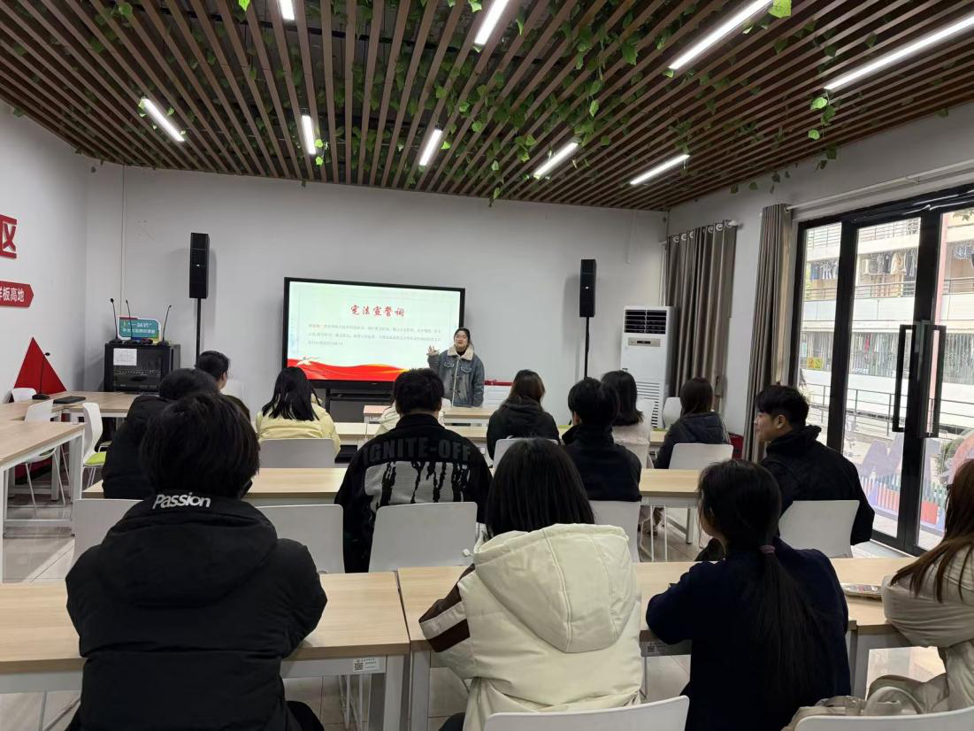 ”在出发,与法同行。12月11日下午,学院在一站式学生社区开展“‘宪’在行动 ‘法’润未来”宪法学习宣传活动,带领青年学子进行宪法宣誓,共同学习宪法相关知识。通过分享现实生活中的案例,生动阐述了宪法作为国家根本大法的重要性及其在国家治理和公民日常生活中的广泛影响。在交流环节中,同学们展开了热烈的讨论,更进一步加深了对宪法与宪法精神的了解。大家纷纷表示在今后的学习生活中要积极学习宪法知识,不断提升自身的法学素养,以实际行动为法治建设添砖加瓦。