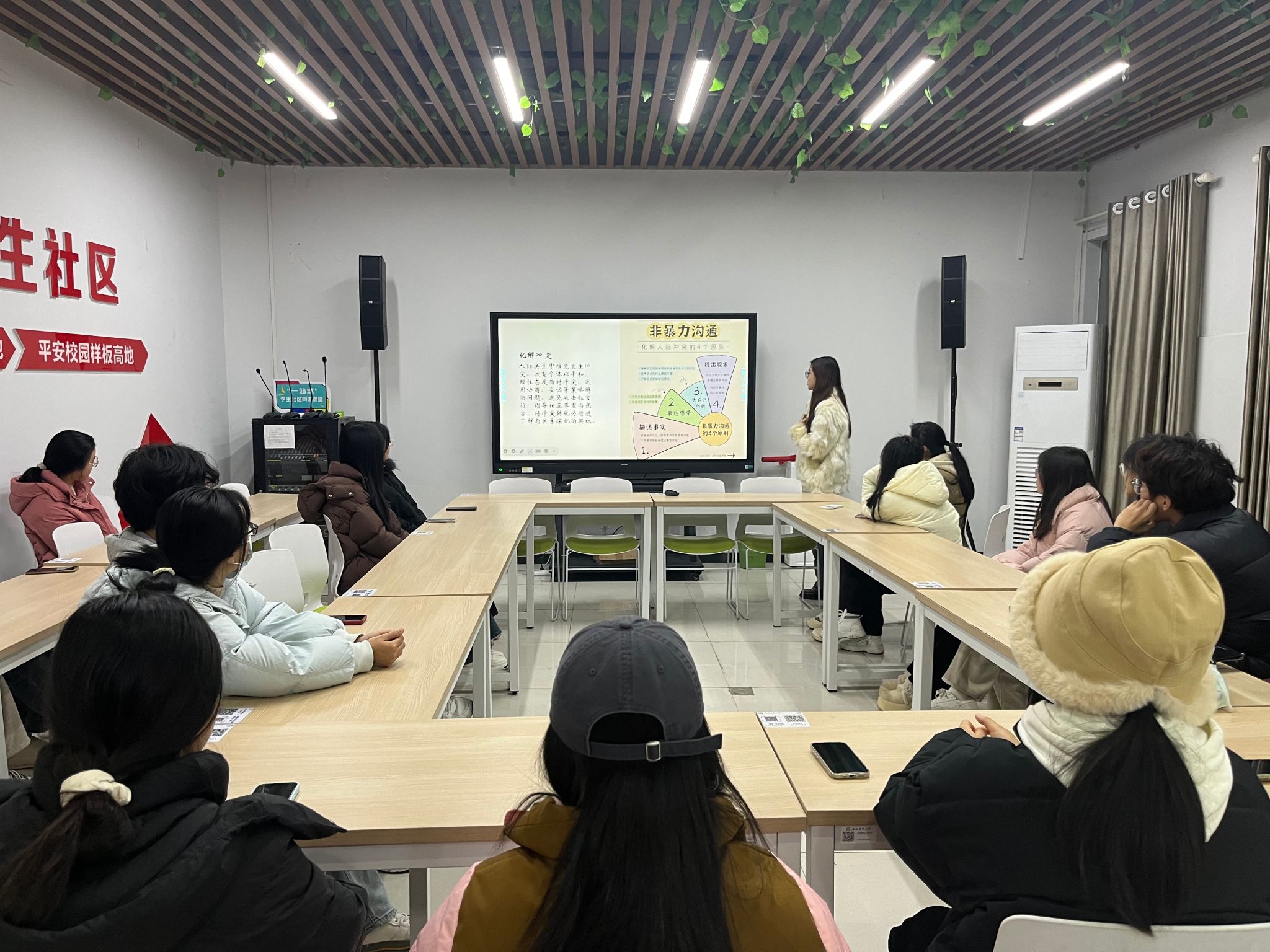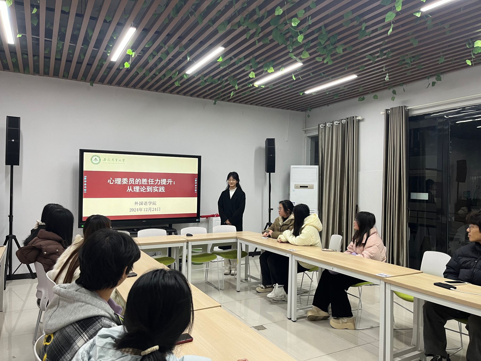 心灵暖阳,能力跃升。12月24日晚上,学院开展了“心理委员的胜任力提升:从理论到实践”活动,活动围绕心理学基础理论、常见心理问题的识别与干预、有效沟通技巧等方面展开,通过角色扮演、案例分析等互动环节,让心理委员们在轻松愉快的氛围中学习到了实用的知识与技能。一位参与的心理委员激动地说:“这次培训让我深刻理解了倾听与共情的力量,我将以更加专业的态度服务于每一位需要帮助的同学。”