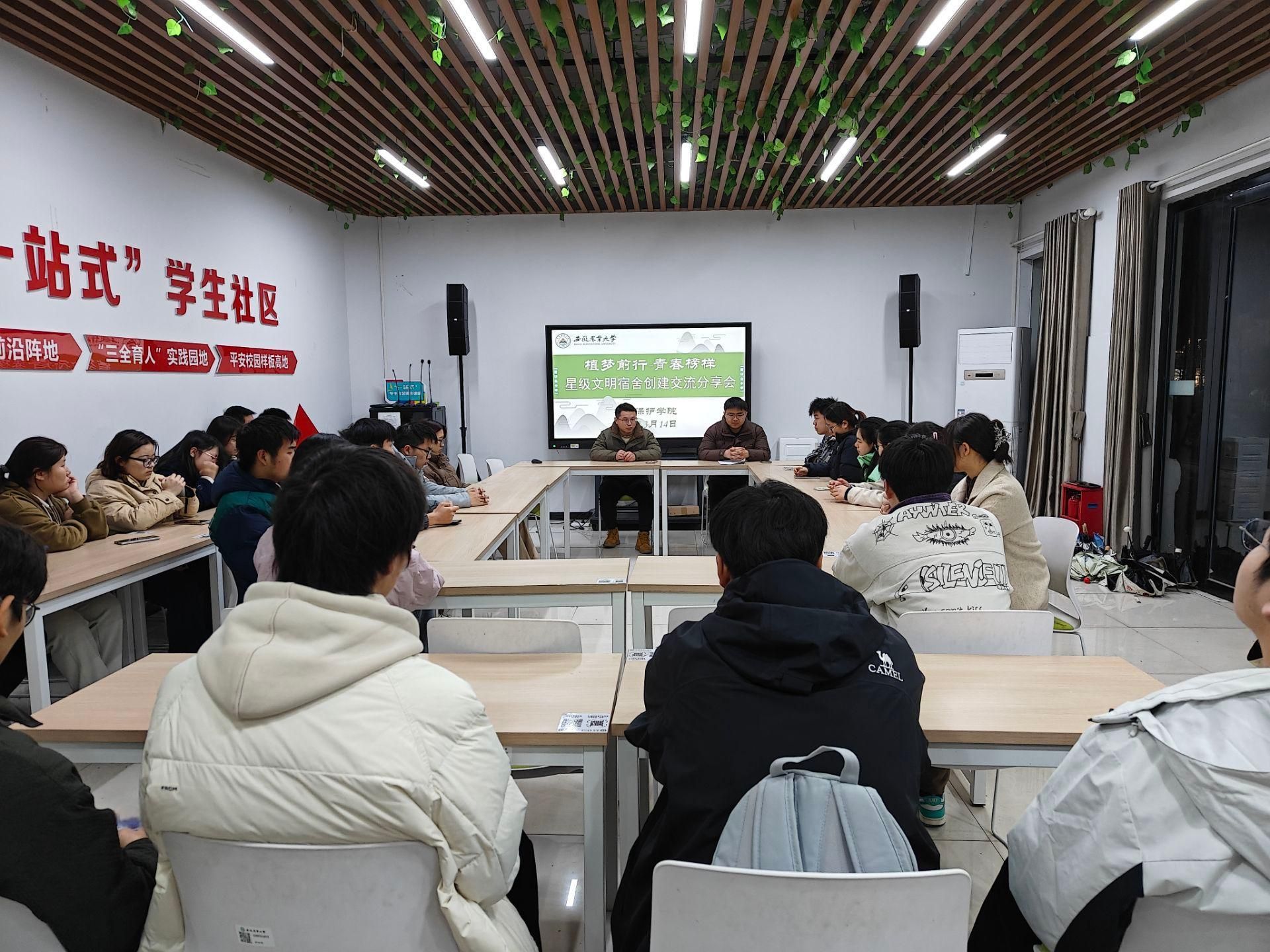 3月14日晚,植物保护学院在大学生“一站式”社区召开青春榜样人物暨星级文明卫生宿舍创建交流分享会,院学生分会权益部负责同学、各班级生活委员和2024年度四星、五星级文明宿舍代表参加,学院团委老师和日常管理老师主持。